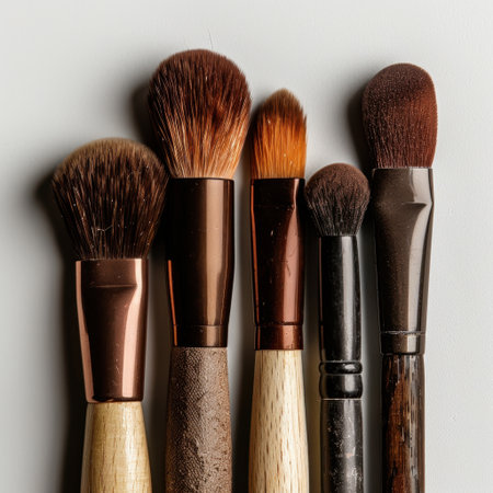 A stunning collection of makeup brushes showcasing various shapes and styles against a neutral backdrop. Perfect for beauty enthusiasts and professionals alike.