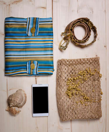 Set of summer clothes. Top view.