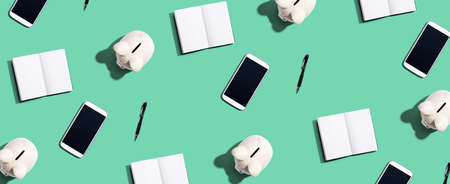 Piggy banks and phones and notebooks