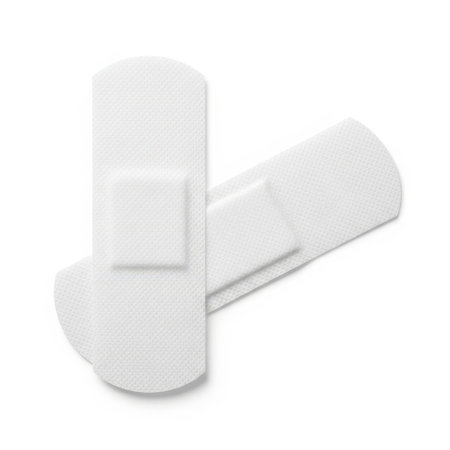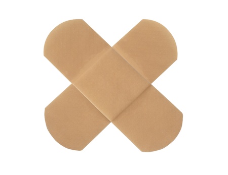 Two cloth plasters placed together to form a cross Isolated on a white background