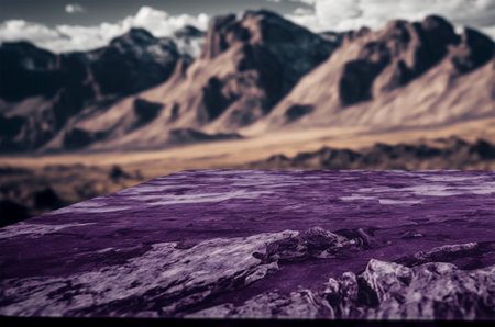 Podium for product advertisement or restaurant menus with beautiful mountain background 3d illustrated