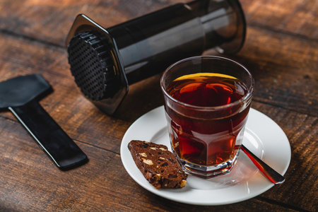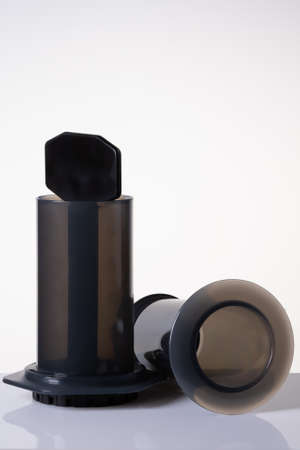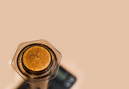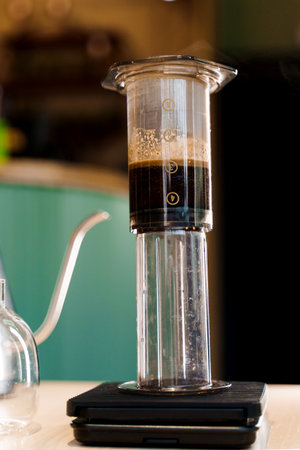Professional fresh coffee brewing aeropress, inverted method
