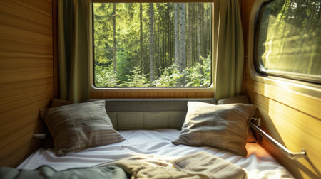 The soothing sounds of nature outside the train window create a calming atmosphere in the cabin