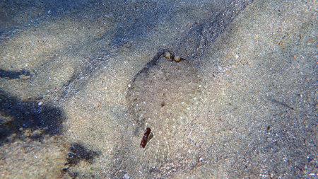 Underwater view of a Sole fish on the sand