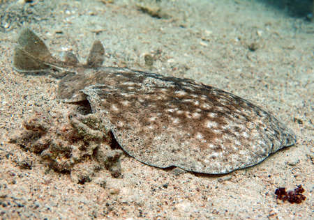 Close up of a stingray on the seabed of Stingrays. This electric stingray grows up to 100 cm and feeds on fish and bottom dwellers.