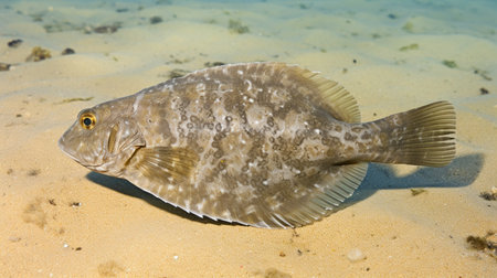 A flat mature flounder fish swimming underwater photography AI Generated Image