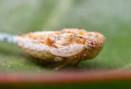 Macro Photo Of A Plant-hopper Flatidae are a family of Fulgoroid plant-hoppers In the subfamily Flatinae, the body of adults is flattened laterally and the tegmina are tent like