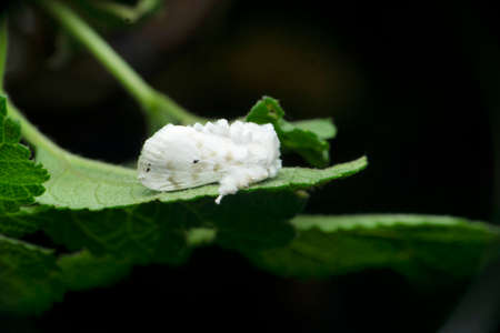 Sphrageidus similis the gold tail moth side view reflexion stock photo