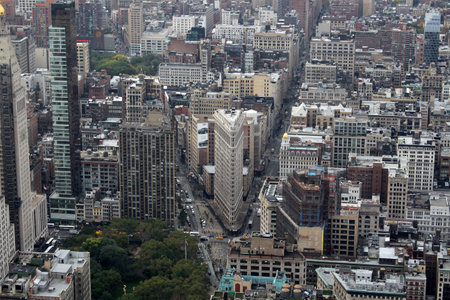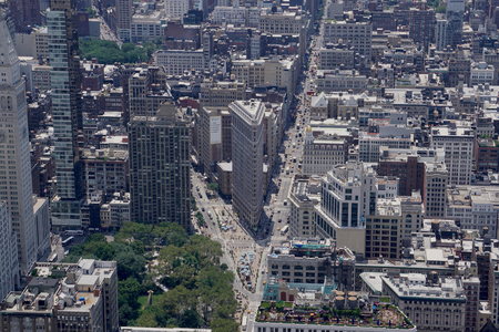 The popular flatiron buliding in New York with the impressive view from above.