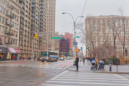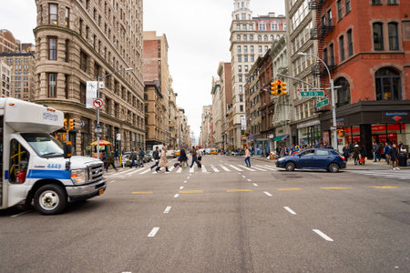 The street near Flatiron building , One of the landmark building in Manhattan , New york city , United States of America - September 1 , 2018
