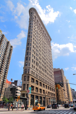 NEW YORK, UNITED STATES - SEPTEMBER 10: Flatiron Building in New York, NY on September 10, 2014. Finished in 1902, the landmark skyscraper was designated a City Landmark in 1966