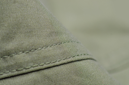 Green military cloth macro fittings clothing on blur background
