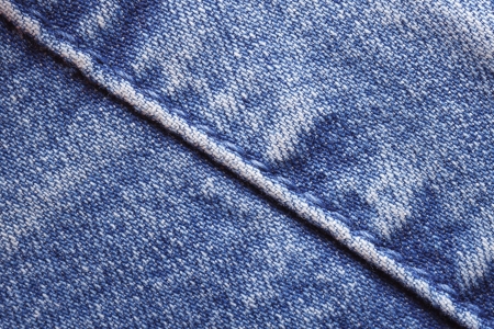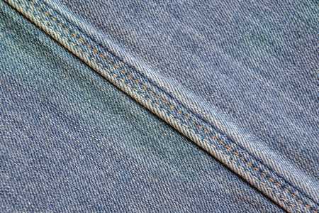 Blue jeans fabric background or denim texture with seam. close up view