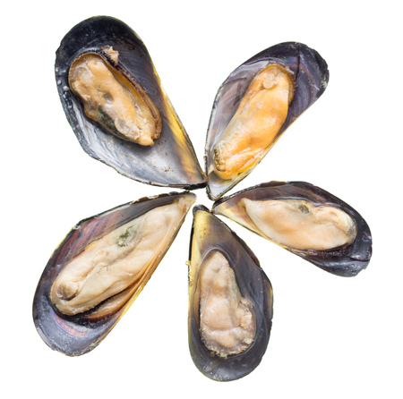 Mussels on the flaps isolated on white