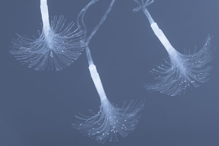 Three dandelion seed heads with orange light bulbs at the end of each strand, creating a warm and inviting glow.