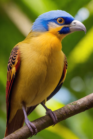 Colorful Bird Perched on Branch in Rainforest