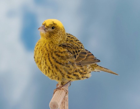 Macro shot of a beautiful yellow-bellied starling (Ficedula hypoleuca)