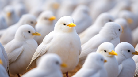 Difference concept showing by extraordinary bird standing out of the crowd. superlative generative AI image.