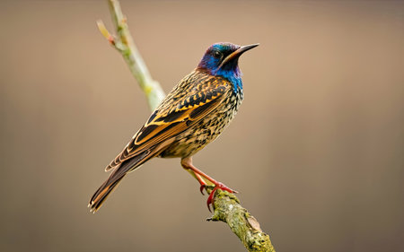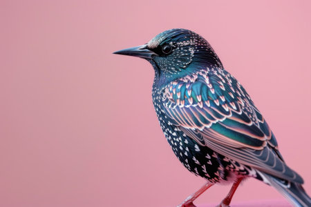 Common Starling, isolated on pastel background, stock photographic style