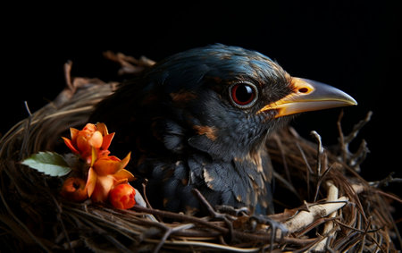 Adorable Nestling Bird Close-up Generative AI