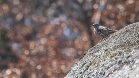 Close up of a small bird on a branch in the autumn forest