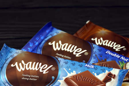 KHARKOV, UKRAINE - JANUARY 3, 2021: Wawel chocolate production. Wawel is polish confectionery company producing chocolates wafers and snacks founded in 1898 in Krakow, Poland