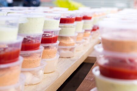 sauces in plastic containers for buffet