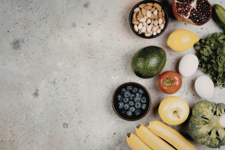 top-down photograph of healthy breakfast ingredients