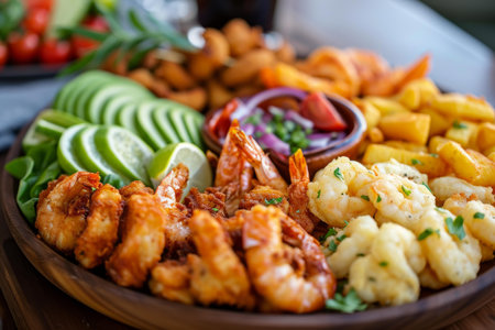 Seafood feast local restaurant food platter indoor setting close-up view culinary delights