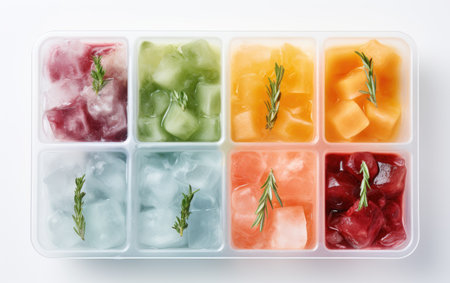 Freezing Nutrition Preserving Baby Food in Tray Isolated on White Background