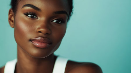 Beautiful Portrait of a Radiant Black Woman with Soft Studio Lighting, Embracing a Healthy Lifestyle