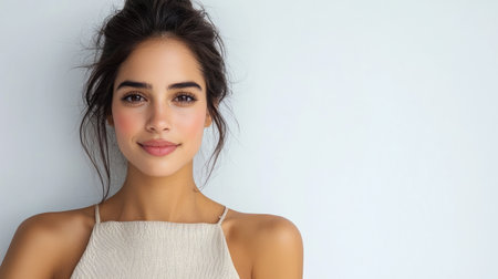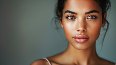 Captivating portrait of a young woman with natural beauty against a neutral backdrop