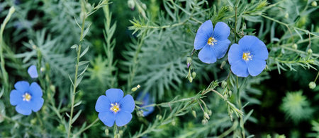 Beautiful blue flowers of flax (Linum usitatissimum)