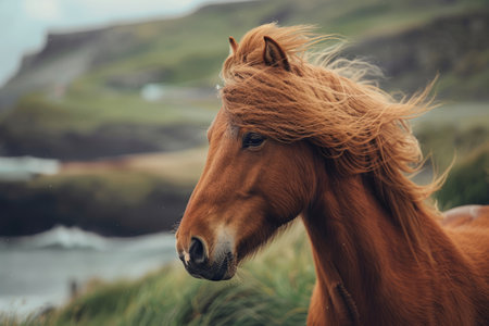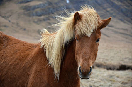 Portrait of Icelandic horse with mane fluttering in the wind