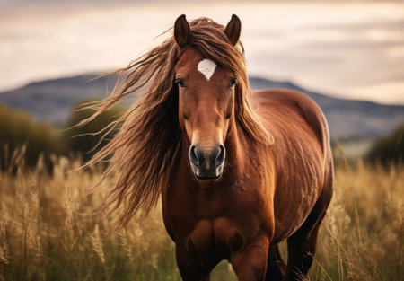 horse with flowing mane in a breeze