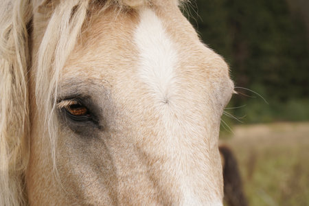 Close up of beautiful white and brown chilean horse in nature.