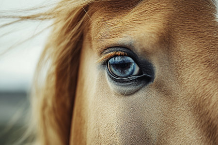 A close up of a horses face with long hair, AI