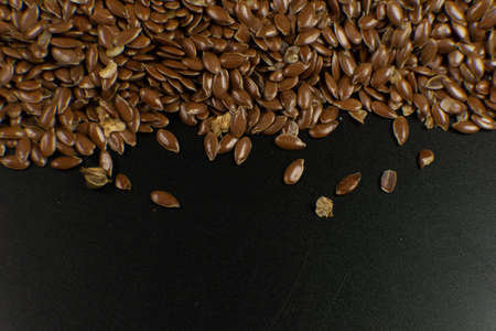 Flaxseed, linseed close up. Bunch of Linum usitatissimum - common flax seeds. Healthy vegetarian nutritional additive for diet.