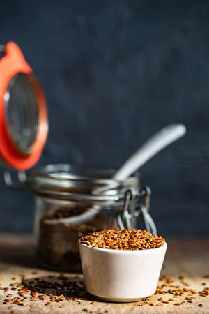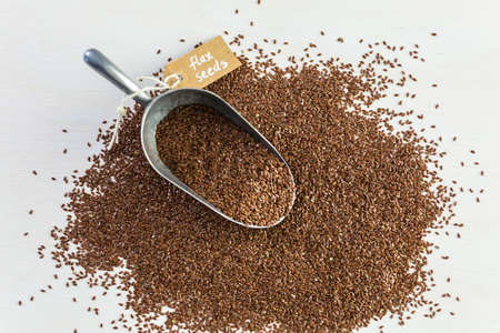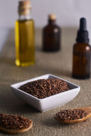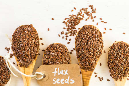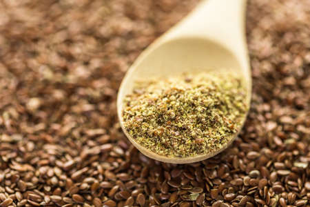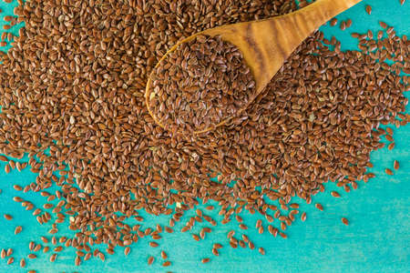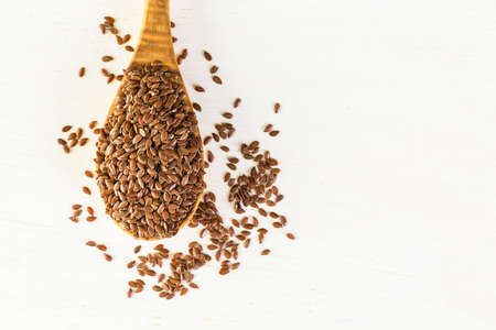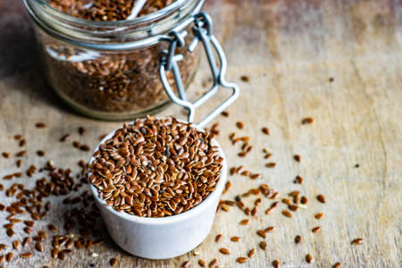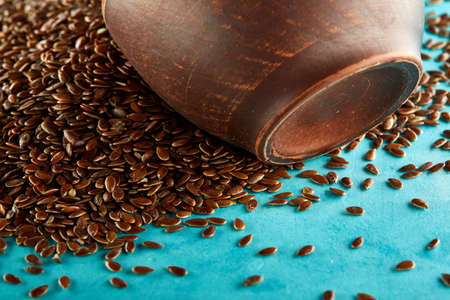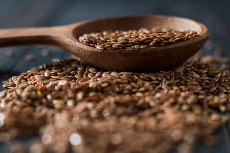 Healthy diet organic nutrition. Brown raw flax seeds linseed as natural food background