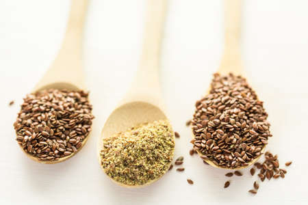 Raw and Uncooked Flaxseeds in the Spoons, Healthy Food Photography