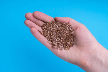 Flax seeds in a sachet. Edible flax seeds. Healthy diet and lifestyle.