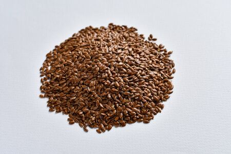 Healthy food organic nutrition. Flax seeds linseed heap on paper background