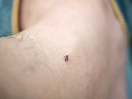 mosquito bites, Animal suck blood in forest, Blister on skin, Man is Asian