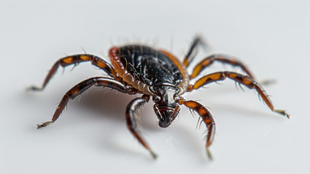Tick on white background. Encephalitis virus or Lyme disease borreliosis or monkey fever. Infectious dermacentor canine tick arachnid parasite insect on white background.