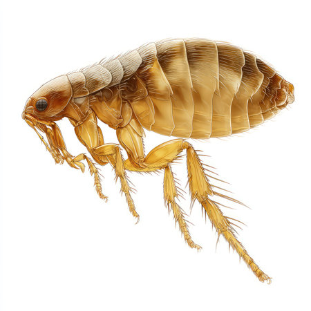 This high-quality illustration features a flea specimen isolated on a white background, perfect for educational, scientific, or illustrative purposes. The detailed anatomy showcases the unique features of this insect, ideal for biology studies.