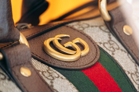 Monte Carlo, Monaco - June 28, 2025: Close-up of a Gucci handbag displayed at the Gucci boutique in Monte Carlo