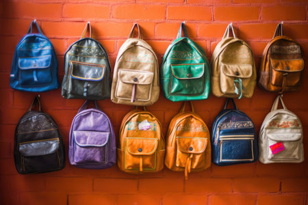 colorful school backpacks lined up ai generated art.