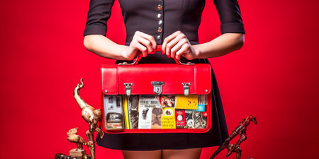 Illustration of a woman with a red and black suitcase Bound by love and fueled by curiosity she sets out on a journey where the fragrant air whispers stories of magic and new beginnings Love VD Vision