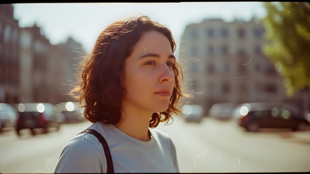Diverse Group of Young Adults Walking Through City Street in Morning Light