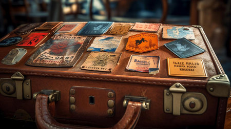 A beautifully crafted leather suitcase sits elegantly at the entrance of a sophisticated building, inviting travelers to embark on their adventure with style and charm.